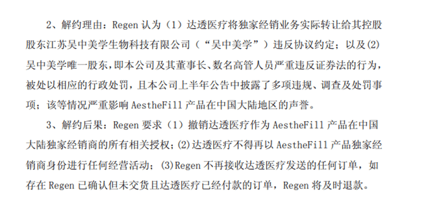 2021年,江苏吴中通过子公司吴中美学控股达透医疗星火配资,而达透医疗获得了Regen授予的艾塑菲在中国大陆至2032年的独家销售代理权,且“不可撤销”。