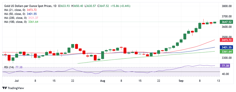 24K99讯 周五(9月12日)亚市尾盘,现货黄金维持日内反弹走势,目前金价位于3653美元/盎司附近,日内大涨近20美元。FXStreet高级分析师Dhwani Mehta撰文,对金价技术走势进行分析。